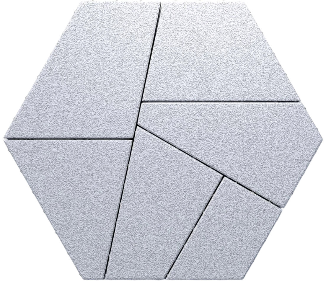 Тротуарная плитка «Мозаика» является настоящей изюминкой нашего каталога. Оригинальная модульная форма включает шесть плит разной конфигурации. При укладке элементы комбинируются между собой, позволяя создавать сложные объемные геометрические рисунки и узоры. Мощение с помощью плитки из коллекции «Мозаика» станет индивидуальной особенностью любого ландшафтного проекта.
