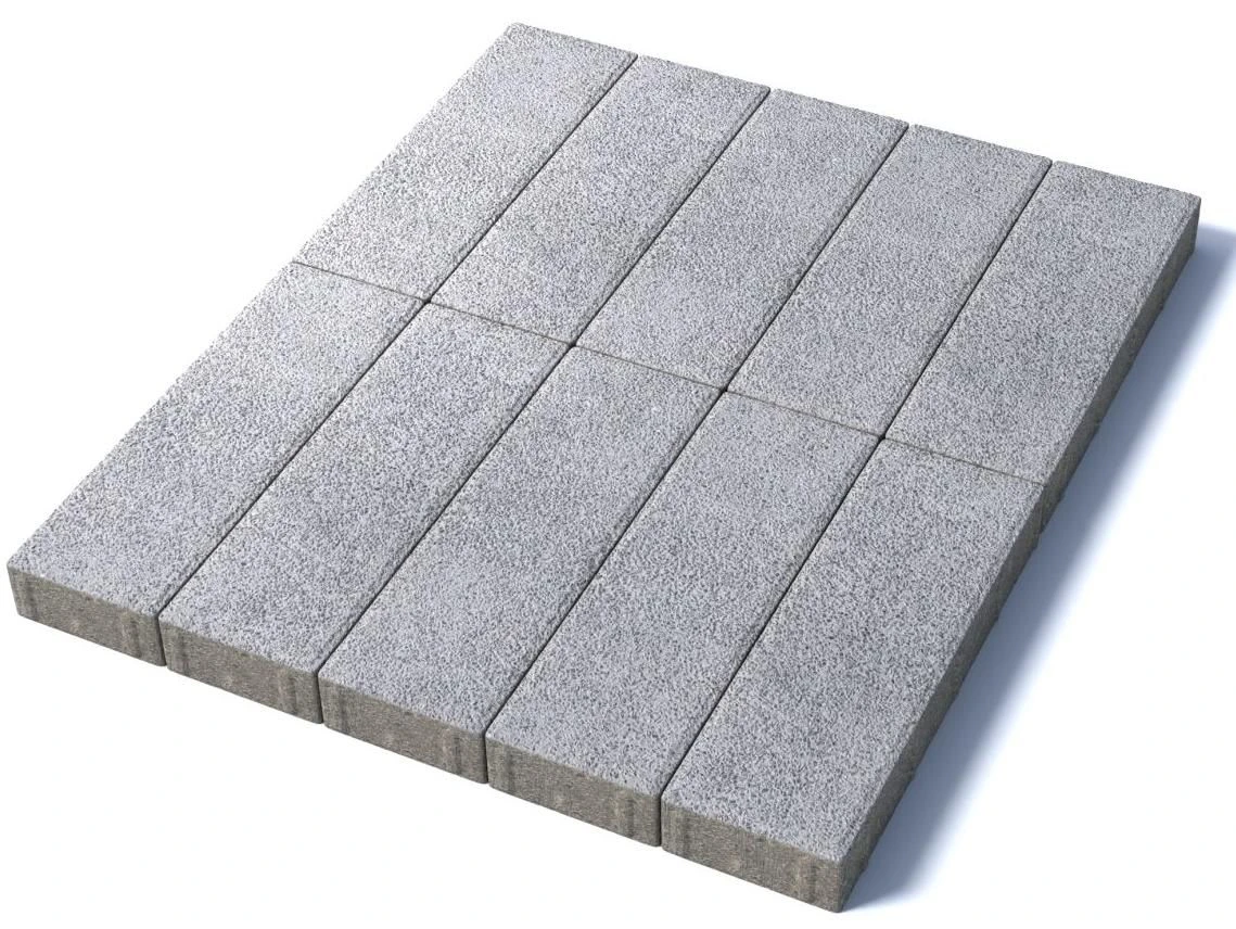 Изготавливается по уникальной технологии методом полусухого вибропрессования из бетона. Поверхность выполнена с оригинальной зернистой фактурой белого цвета. Натуральная гранитная крошка в лицевом слое изделий наделяет плитку приятной шероховатостью, а также устойчивостью к скольжению. Брусчатка Паркет 600х200 отличается высокой износостойкостью и практичностью в эксплуатации.