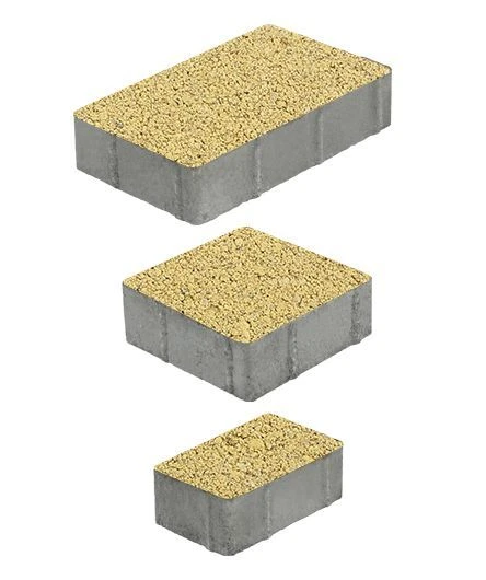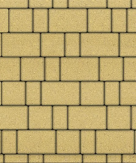 Состоит из 3-х элементов, которые выкладываются в хаотичном порядке рядами. Изготавливается по уникальной технологии методом полусухого вибропрессования из бетона. Поверхность желтого цвета.