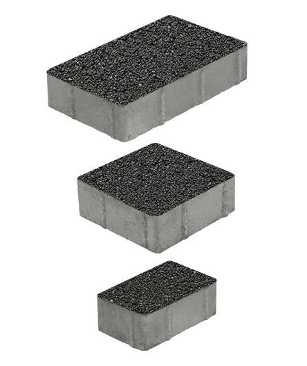Состоит из 3-х элементов, которые выкладываются в хаотичном порядке рядами. Изготавливается по уникальной технологии методом полусухого вибропрессования из бетона. Поверхность выполнена с оригинальной зернистой фактурой черного цвета. Натуральная гранитная крошка в лицевом слое изделий наделяет плитку приятной шероховатостью, а также устойчивостью к скольжению.