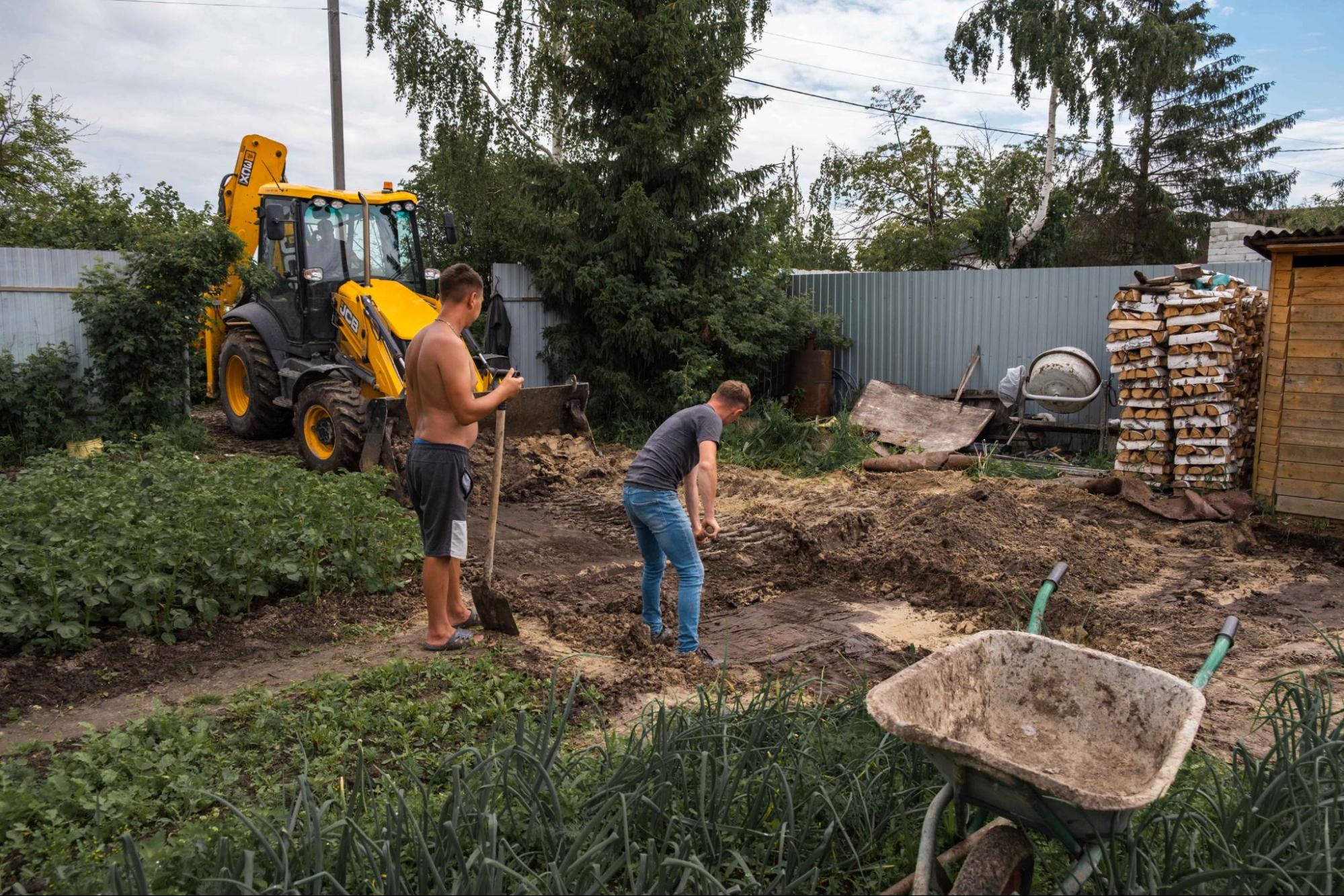 - Устройство дренажа с укладкой геотекстиля и щебня для водоотведения.
