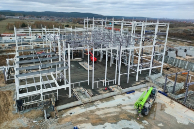 Продолжаются работы по строительству завода тротуарной плиты и элементов благоустройства «Поревит» в Екатеринбурге. Предприятие возводят на площадке "Уктус" особой экономической зоны "Титановая долина".