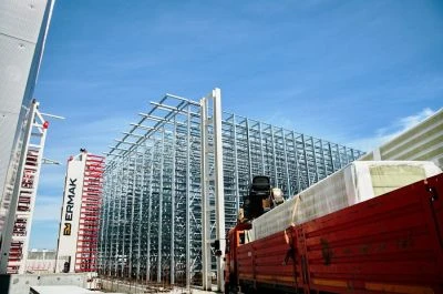 - Приступили к обшивке сэндвич-панелями каркаса своего главного производственного корпуса.