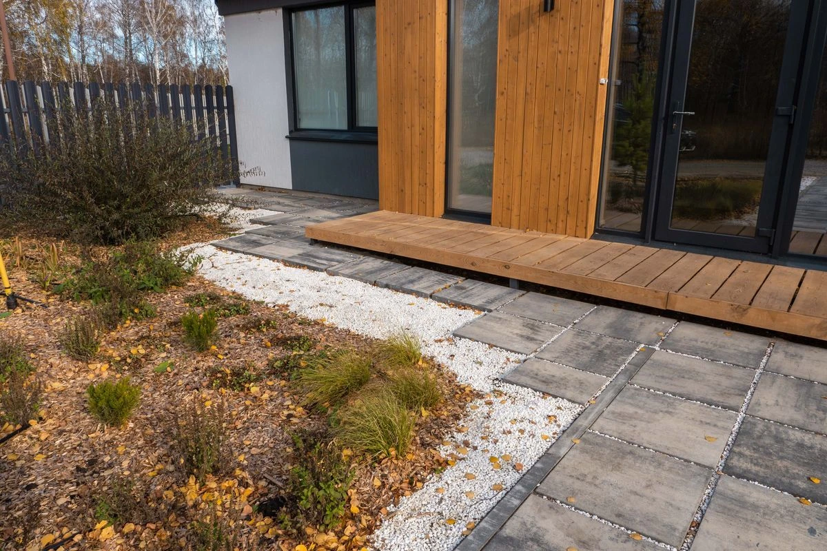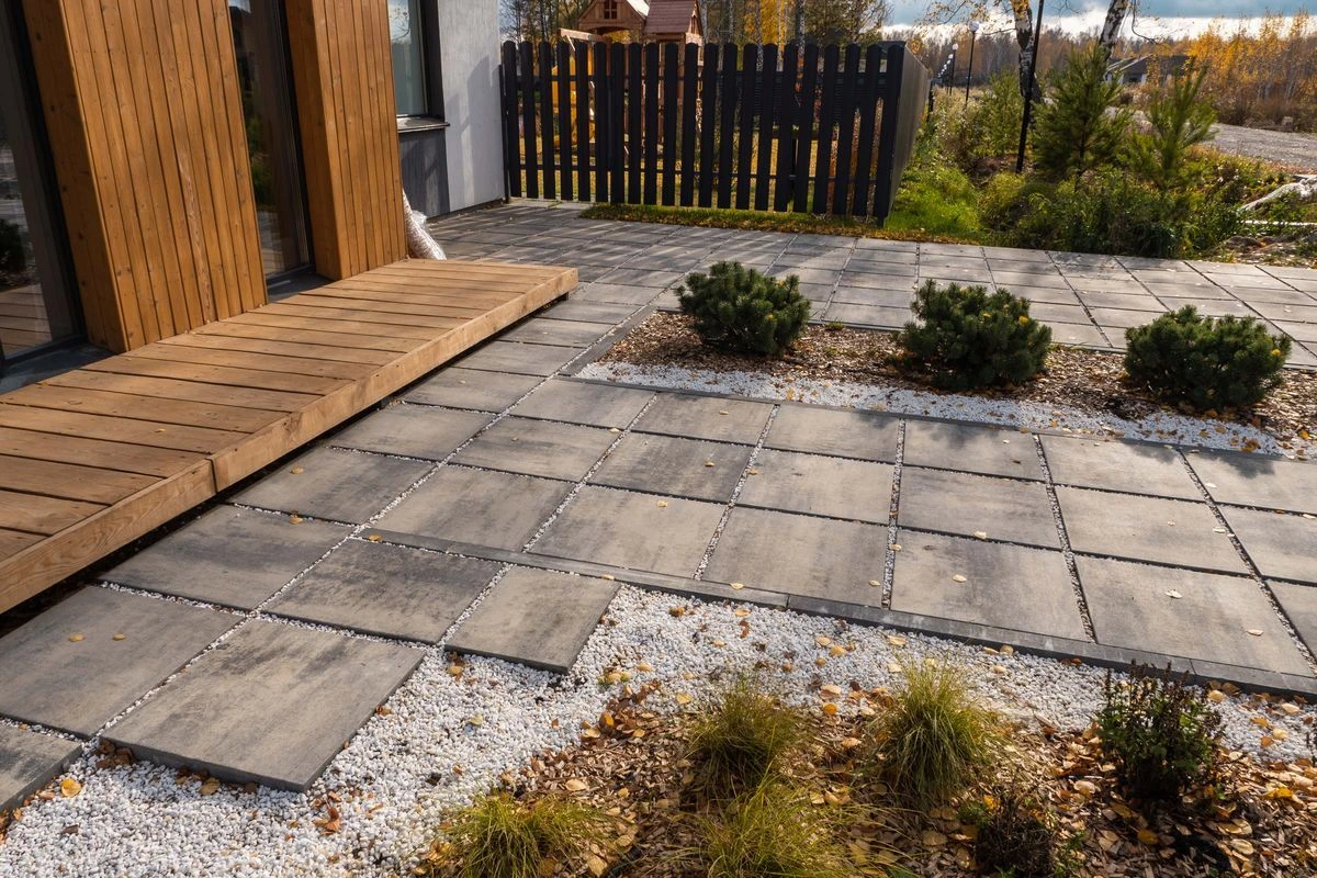 • Благоустройство дома: плитка в цвете Антрацит и шаговые дорожки