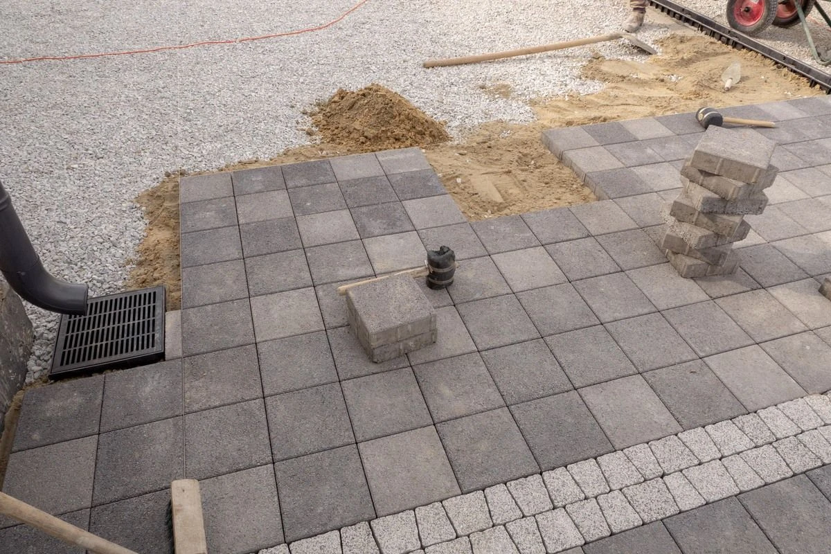 • Укладка бетонной плитки серого цвета в Комарово