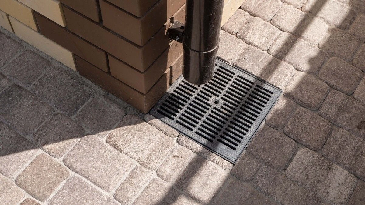 60 кв.м асфальта, вокруг дома сделаны гидроизоляция и утепление отмостки, далее установлены дождеприемные колодцы. Выполнено мощение плиткой Классико в цвете Хаски на отмостке, на парковке у дома, и на других участках.