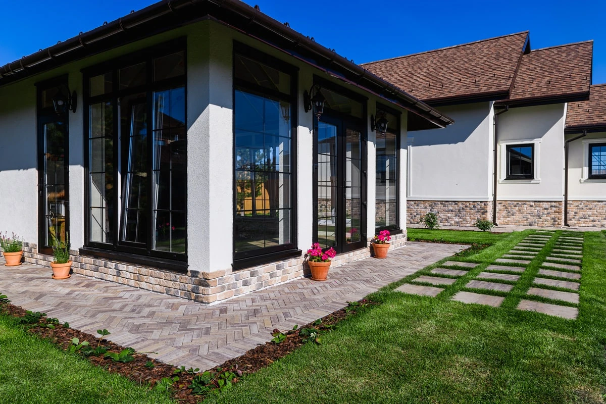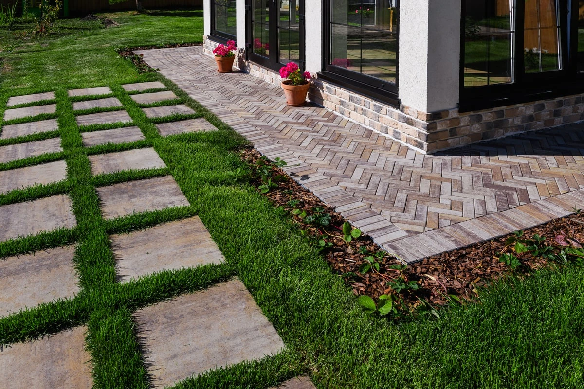 • Благоустройство дома: плитка в цвете Антрацит и шаговые дорожки