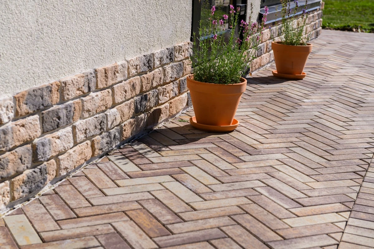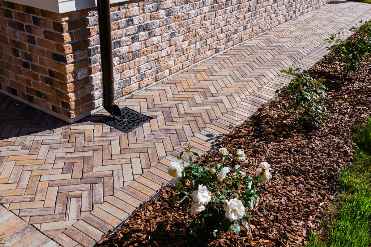• Благоустройство территории дома в Луговом: плитка Старый город, Доломит