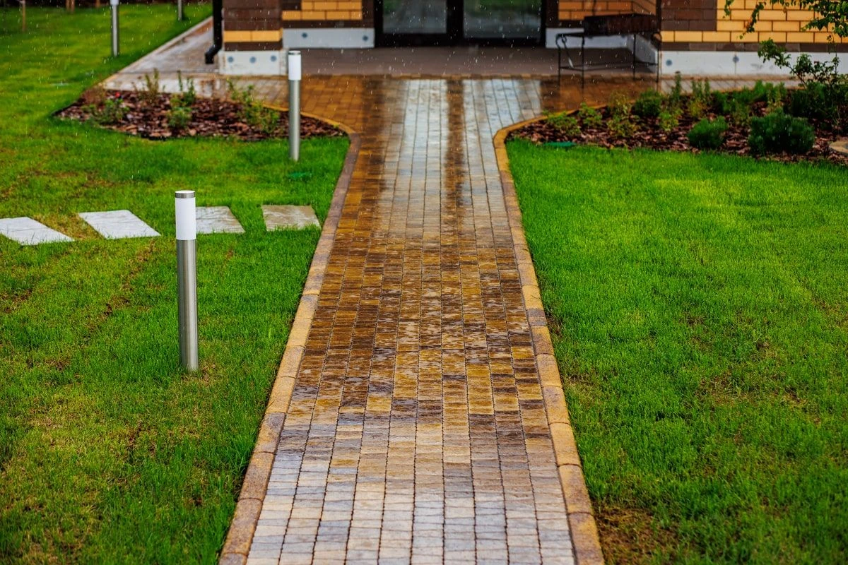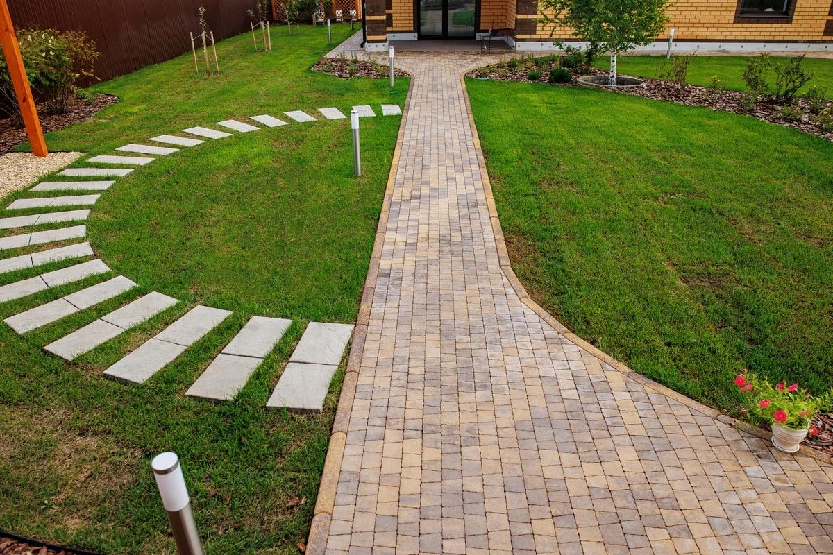 В частном доме в Перевалово выполнен полный комплекс работ по благоустройству: укладка брусчатки и рулонного газона, освещение, автополив, посадка растений и водоотведение. Участок 10 соток. Площадь мощения плиткой 135 кв.м. Для садовых дорожек использована плита Абрис, цвет Янтарь и шарнирные (радиусные) бордюры к ней, а для пошаговых дорожек плита Литос, гладкая белая. Сроки реализации проекта - 1,5 месяца. Материалы были закуплены заранее.