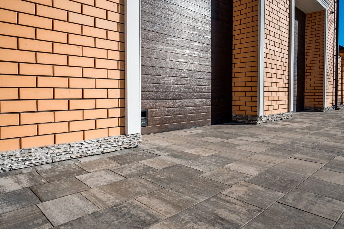 С помощью плитки была выполнена отмостка возле дома, въезд в гараж и парковочное место, входная группа у крыльца. Материалы подобраны таким образом, чтобы создать нестандартную текстуру без необходимости микса разных коллекций плитки.