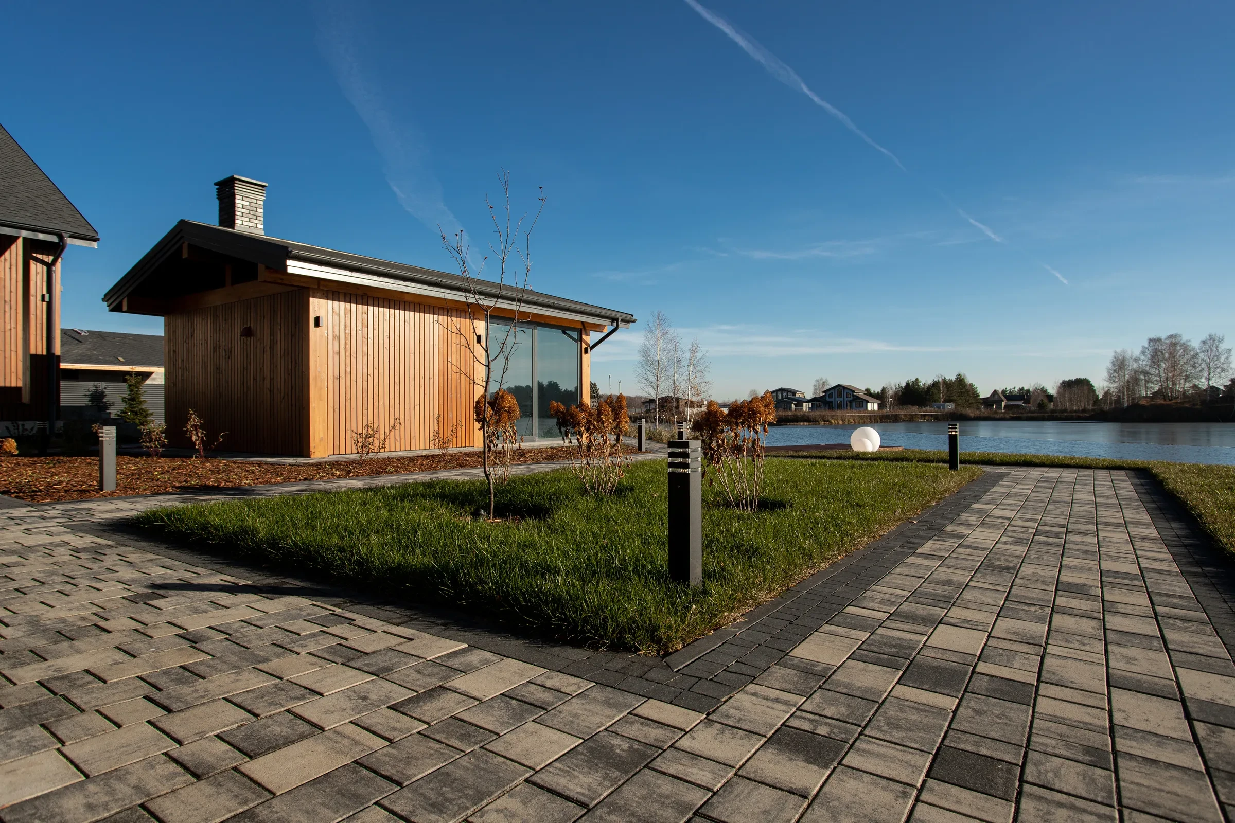 • Благоустройство дома: плитка в цвете Антрацит и шаговые дорожки