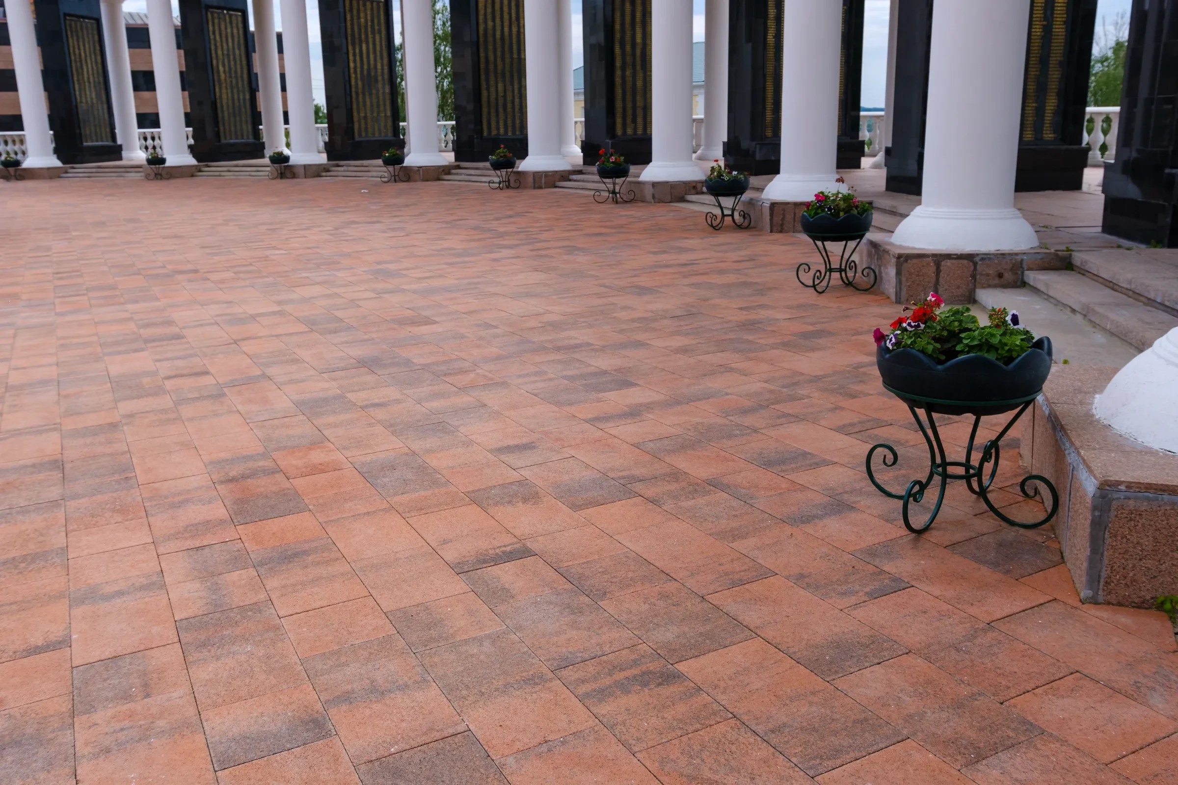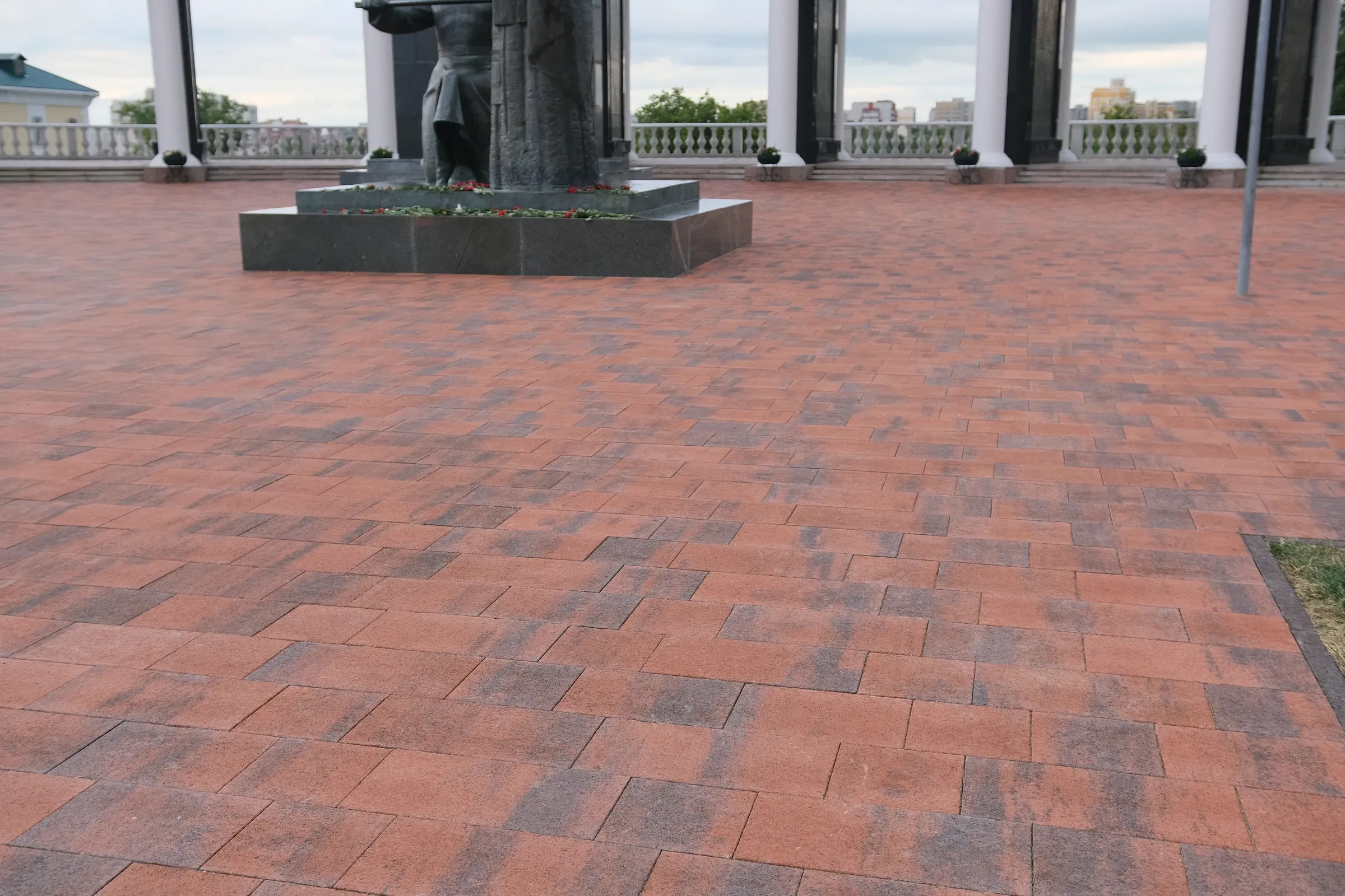 Заменено старое тротуарной покрытие на плиту формы Трио, покрытие Гранит, цвет Сиена.