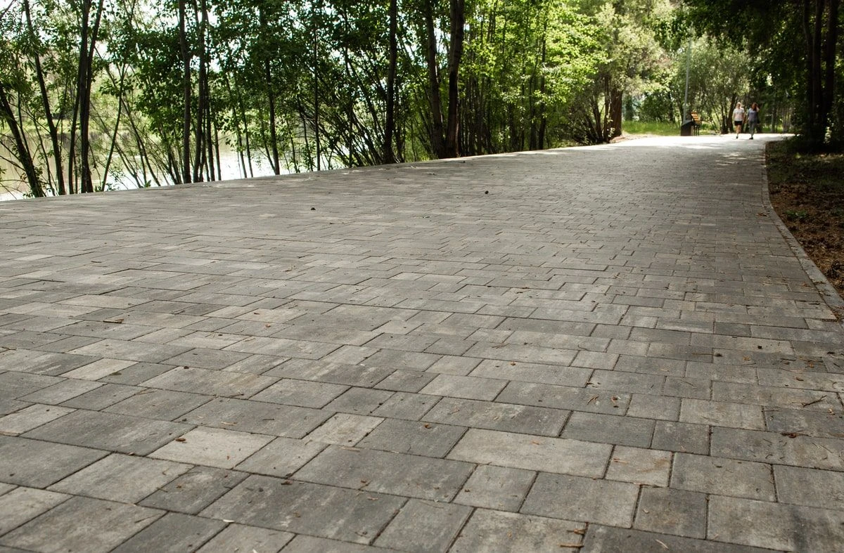 На дорожно-тропиночной сети использована плита Старый город, цвет Шунгит.