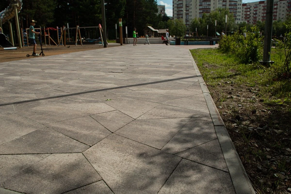 В настоящее время в рамках масштабной реновации парка «За Саймой» продолжаются работы по его благоустройству. В 2021 в районе набережной Ивана Кайдалова построена современная детская площадка «Ботаника», а также уложена тротуарная плитка для пешеходной зоны. Плитка необычная – в форме многоугольников – Мозаика, коллекция листопад гладкий, цвет Хаски и Сиена. Толщина 80 мм. Смотрится необычно и современно, дополняя детские игровые зоны. Яркие цвета плитки с градиентным переходом – коричневый, серый и красный будут создавать настроение посетителям парка.